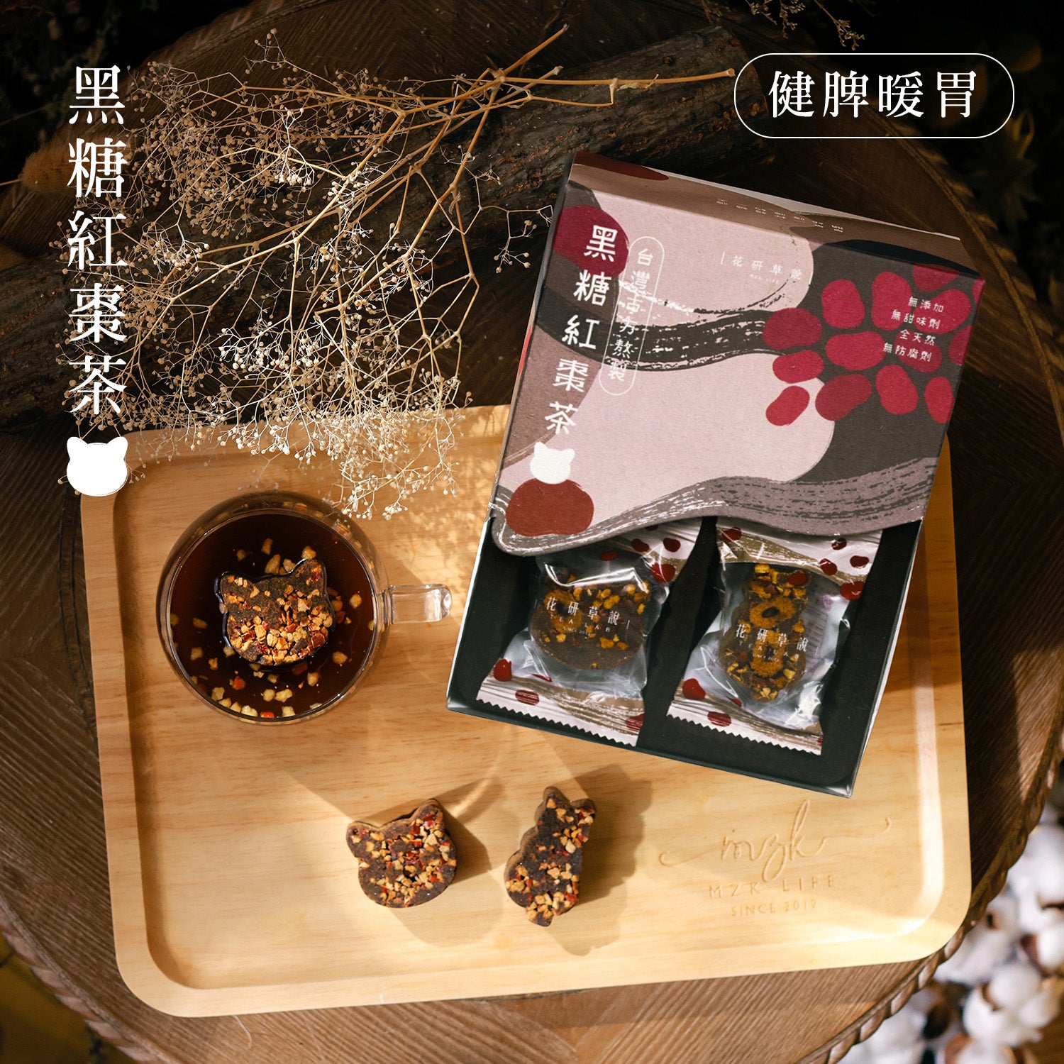 精選特級完熟紅棗,配合頂級玉林甘蔗熬製的黑糖,有助健脾暖胃,養血安神,驅寒除濕,同時回復紅潤面色。兩款貓造型糖磚以台灣古方,經過1 6道工序匠心熬煮而成。全天然、無添加甜味劑及防腐劑,自然改善血虛失眠、腸胃不適等問題。尤其適合精神疲勞、氣血不足的久坐辦公族。